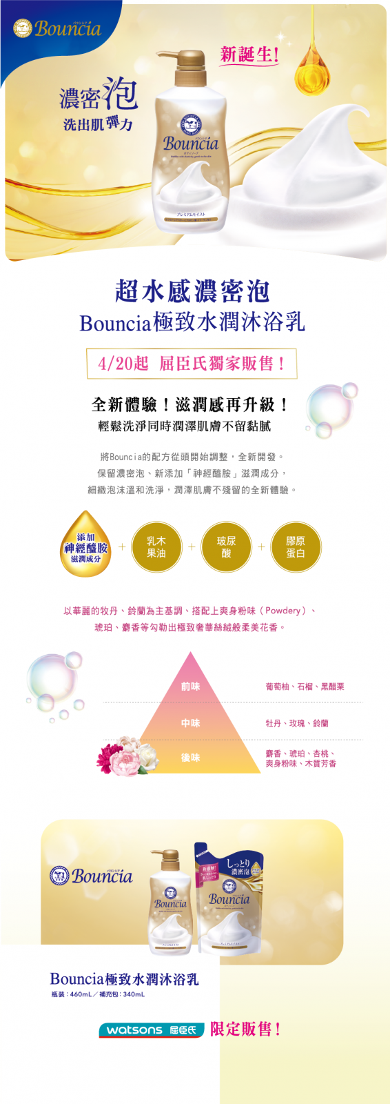 Bouncia 極致水潤沐浴乳屈臣氏獨家上市!